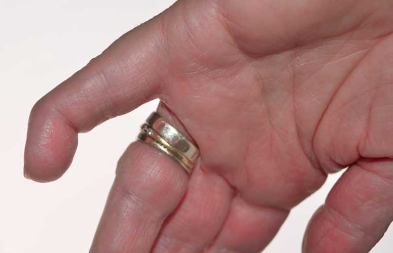 O dedo em martelo é uma deformidade no dedo ocasionada por uma ruptura do tendão extensorterminal. Em alguns casos a lesão também está associada a fratura da estrutura óssea ligada ao tendão. Isso faz com que a ponta do dedo do paciente fique dobrada o tempo todo.